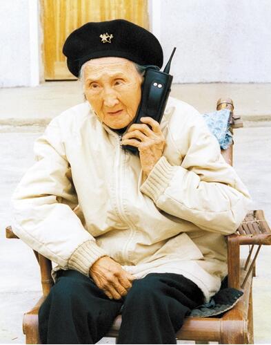 王琛攝影作品。1993年3月,湖南省寧鄉(xiāng)縣南田坪鄉(xiāng)宜坪村,王琛從廣州回到湖南見奶奶,奶奶毛氏用王琛的手機(jī)與他父親通話。