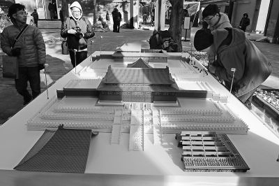 參加故宮“文化+科技”國(guó)際論壇的嘉賓在故宮數(shù)字所參觀3D打印的微縮紫禁城。記者 李繼輝攝