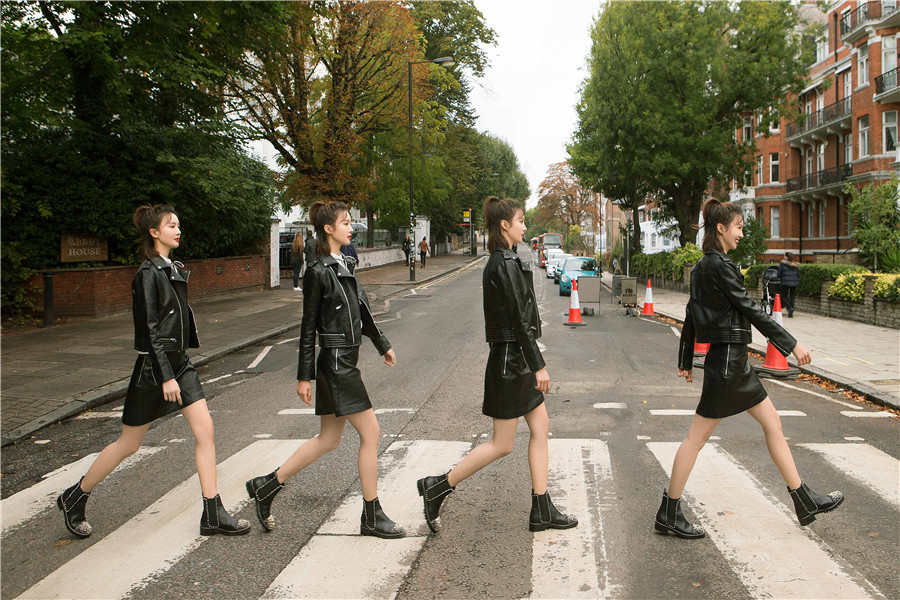 ??? 近日,金晨一組在倫敦的街拍照曝光。照片中,金晨置身于倫敦的艾比路,黑色皮衣搭配短裙大秀美腿,馬丁靴的搭配也更顯前衛(wèi)時髦。與以往或優(yōu)雅或復古的街拍不同,金晨此次歡脫地模仿起披頭士過馬路的經(jīng)典畫面,一人cos披頭士四位成員,可謂創(chuàng)意十足。而她時不時做出旋轉(zhuǎn)跳躍的高難度的動作,令不少網(wǎng)友紛紛表示:為金晨瘋狂打call。
