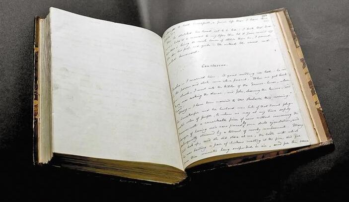 據(jù)介紹,此次展覽展出的來自大英圖書館珍稀藏品有洛蒂·勃朗特的《簡(jiǎn)·愛》原稿。中國的讀者一定對(duì)名著《簡(jiǎn)·愛》的結(jié)局并不陌生。簡(jiǎn)最終回到被燒毀的羅切斯特莊園,回到因火災(zāi)而失明、殘疾的羅切斯特先生身邊。小說的結(jié)局以“讀者,我嫁給了他”這句簡(jiǎn)的獨(dú)白開始,獲得“新生”的羅切斯特先生從此與簡(jiǎn)相依相偎,二人在心靈契合的愛情中得到圓滿。這次在上海圖書館展出的《簡(jiǎn)·愛》謄寫本手稿第三卷包含了夏洛蒂·勃朗特寫下的這個(gè)故事的經(jīng)典結(jié)局,在手稿的展出頁上,勃朗特親筆寫下的原文“Reader,I married him.”清晰可見。勃朗特的字跡娟秀整齊,這份手稿是勃朗特根據(jù)一份更早的創(chuàng)造手稿親筆謄寫而成的,上面還可以看到一些抄寫時(shí)出錯(cuò)的地方,也有對(duì)文本的最后修改。這份手稿后來被寄到出版商那里,在印刷時(shí)也使用了這份手稿,上面可見負(fù)責(zé)印刷的幾位工人的鉛筆簽名,以及工人們沾滿了油墨的指印。