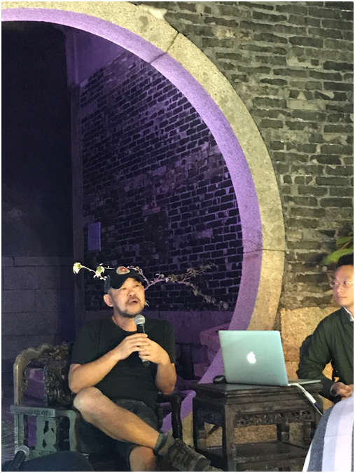 本次講座活動是由藝術(shù)家、策展人楊勇主持,兩位特邀嘉賓分別是中山大學(xué)傳播與設(shè)計學(xué)院的教授馮原(同時擔(dān)任2011年深圳香港/城市雙城雙年展學(xué)術(shù)委員會)以及現(xiàn)任Collect總監(jiān)伍常(曾為佳士得拍賣行美術(shù)學(xué)院亞洲課程主管)。在粵港澳大灣區(qū)的城市群背景下,主持人從大鵬所城的歷史及賴氏家族影響遺留下的民俗,講座嘉賓則分別從各自所處的城市—香港、廣州為著眼點展開學(xué)術(shù)討論。