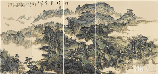《松風泉聲》 山水五聯(lián)屏 69×160cm×5 2018年