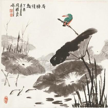 周國良,生于1945年,是周懷民之幼子。他自幼在父親的指導(dǎo)教育下從事書法繪畫學(xué)習(xí),特有的條件和環(huán)境使他有更多機(jī)會(huì)觀賞臨摹歷代名作真跡,奠定了扎實(shí)的藝術(shù)功底。上世紀(jì)70年代初,他師承上海著名畫家吳青霞研習(xí)鯉魚、花鳥,擅長山水、花鳥,尤以鯉魚著稱。從藝四十余載,周國良勤奮耕耘,堅(jiān)持寫生,足跡遍及祖國大江南北、名山大川,在繪畫中既能保持中國畫傳統(tǒng)技法,又有新的創(chuàng)意,形成獨(dú)特風(fēng)格。