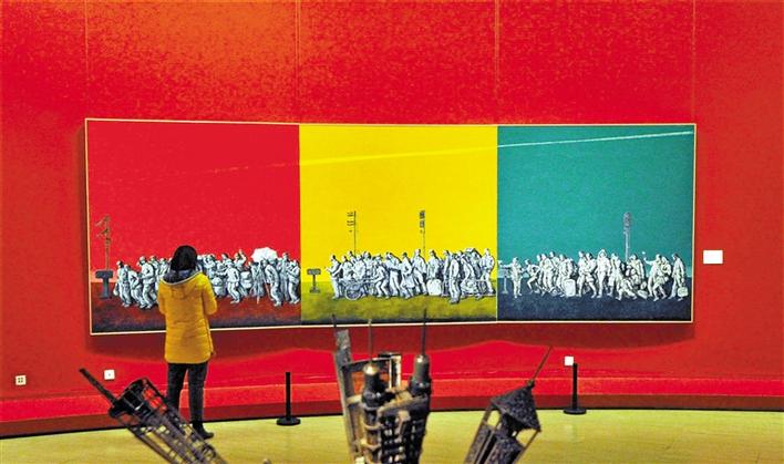 進(jìn)入中國美術(shù)館正中圓廳,巨幅三聯(lián)作《時(shí)代之歌——闖·創(chuàng)·窗》格外令人矚目。廣東省美術(shù)家協(xié)會副主席、深圳市文聯(lián)專職副主席梁宇向記者表示,“我畫的是不同時(shí)期的普普通通的深圳建設(shè)者,正是他們鑄就了深圳發(fā)展的奇跡?!?/p>