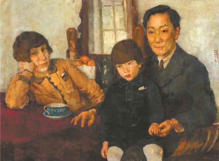 《楊仲子全家?!芬彩俏χ?,它以沉靜之態(tài)吸引觀眾駐足,忍不住與畫中人對視。這是徐悲鴻的佳作,畫的是好友楊仲子一家。楊仲子是中國最早留學歐洲研習西方音樂的先驅(qū),回國后傳授西方音樂,創(chuàng)建并推進中國音樂教育教學體制,倡導改進并推動民族音樂發(fā)展。這件創(chuàng)作于1928年冬天的作品,徐悲鴻畫出了楊仲子和妻子、孩子閑適的狀態(tài)。畫中三人神態(tài)各異,在藝術(shù)家的傳情畫筆下,觀眾似能看到他們恬淡表情之后的情緒。