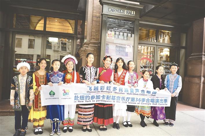 深圳飛越彩虹合唱團11個小演員身著色彩紛呈的少數(shù)民族服裝放歌卡耐基音樂廳