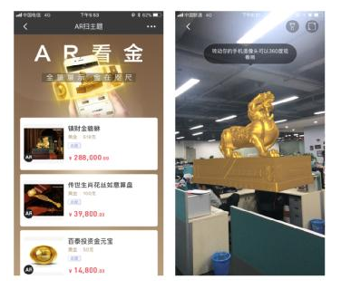 此外,招商銀行App6.0還應(yīng)用增強(qiáng)現(xiàn)實(shí)技術(shù),推出的銀行業(yè)首個(gè)支持蘋果ARkit的AR看金功能,生成3D實(shí)物黃金模型,不放過每一個(gè)細(xì)節(jié),以后選購實(shí)物黃金無須再到網(wǎng)點(diǎn),在招商銀行App你就可以享受360度全方位的逼真黃金視覺體驗(yàn),又酷又好玩。