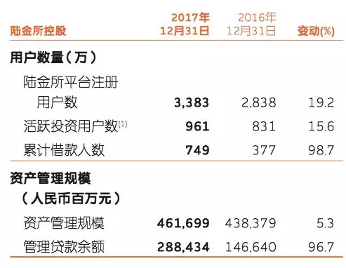 平安年報顯示,2017年,在財富管理、消費(fèi)金融、機(jī)構(gòu)間交易等重要業(yè)務(wù)領(lǐng)域,陸金所控股繼續(xù)保持快速發(fā)展,截至2017年末,資產(chǎn)管理規(guī)模達(dá)4,616.99億元,較年初增長5.3%;管理貸款余額2,884.34億元,較年初增長96.7%;首次實(shí)現(xiàn)全年整體盈利。