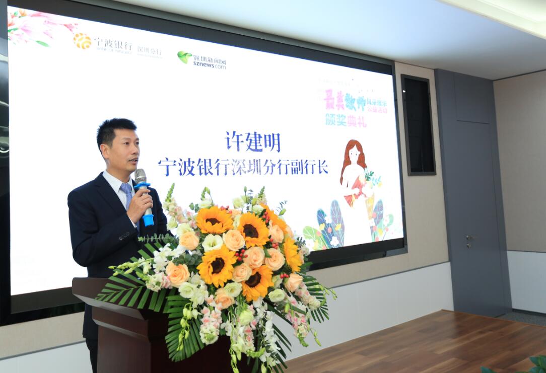 在頒獎儀式現(xiàn)場,寧波銀行深圳分行副行長許建明向全體教師致以節(jié)日的問候,他在致辭中表示:“寧波銀行扎根深圳十余載,在服務(wù)廣大深圳市民朋友的過程中,一直以教師群體的‘愛崗敬業(yè)、無私奉獻’精神作為自己的標(biāo)桿。”同時,許建明還表示,這次“鵬城最美教師”活動讓自己感觸良多,寧波銀行在以后工作過程中,會投入更多的精力去推進惠民工程,開展更多的公益項目。