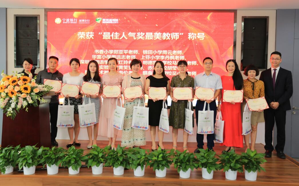 深圳新聞網(wǎng)訊 (記者朱琳江書劍)“國將興,必貴師而重傅?!崩蠋熥鳛椤白饚熤氐馈本竦谋憩F(xiàn)主體,傳道受業(yè)解惑,為社會發(fā)展不斷輸送著優(yōu)質(zhì)人才。2018年9月8日教師節(jié)前夕,由深圳新聞網(wǎng)、寧波銀行深圳分行聯(lián)合主辦的首屆“鵬城最美教師”風(fēng)采展示公益活動頒獎儀式在寧波銀行深圳分行隆重舉行?;顒幼?018年3月2日啟動以來,吸引了深圳市各中小學(xué)校的廣泛關(guān)注,經(jīng)過半年時間的尋找與舉薦,共有34位優(yōu)秀教師獲“鵬城最美教師”殊榮。其中有10位教師,通過網(wǎng)絡(luò)獻花獲得“最佳人氣獎最美教師”榮譽稱號。