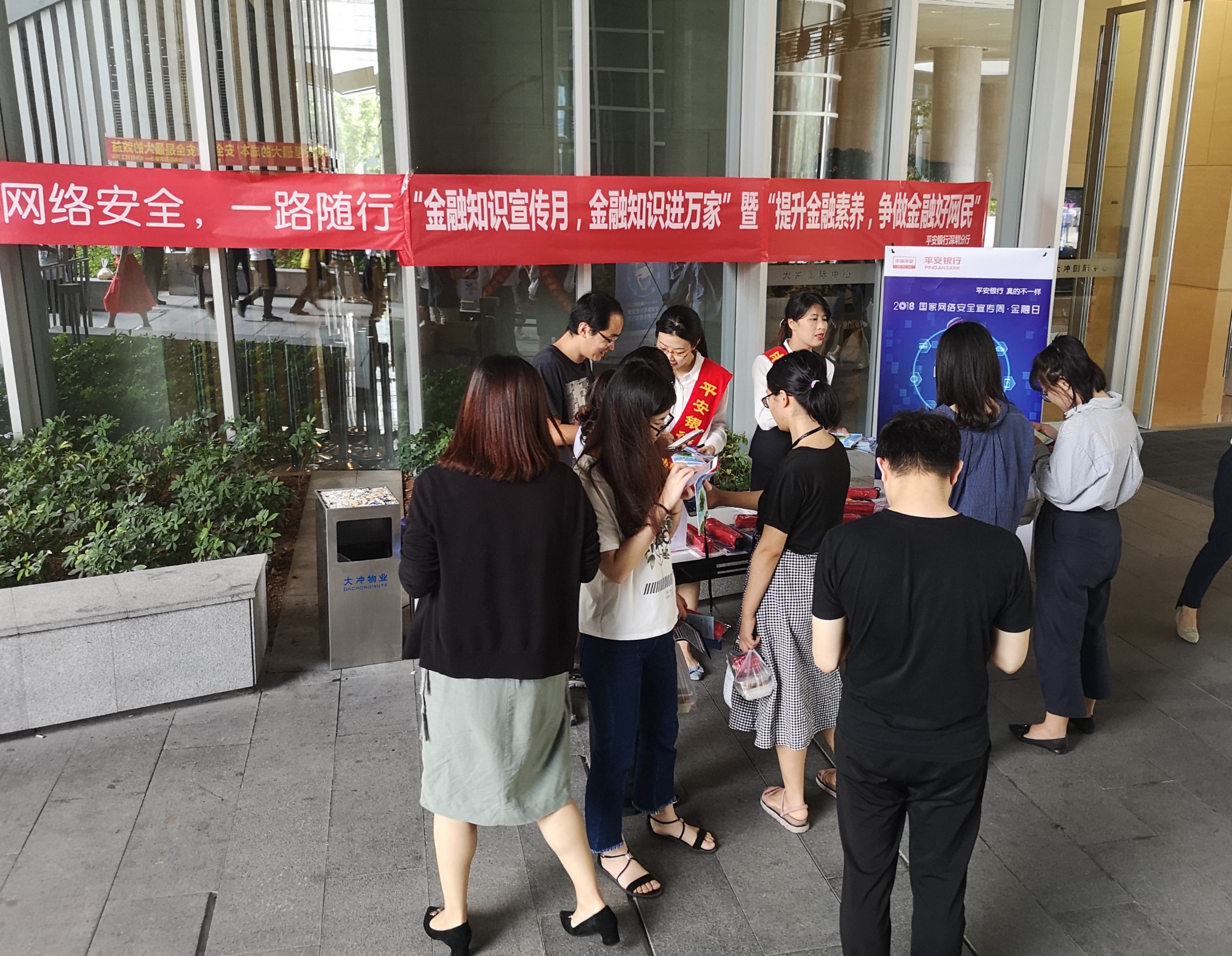 針對(duì)非法集資案件頻發(fā)的情況,9月19日中午,平安銀行深圳分行組織大沖支行在人群密集區(qū)域設(shè)點(diǎn)宣傳,工作人員以發(fā)放宣傳折頁、擺放橫幅、張貼海報(bào)等形式向公眾普及各類正規(guī)投資渠道等投資理財(cái)知識(shí),引導(dǎo)公眾合理選擇金融產(chǎn)品和服務(wù),提升防范非法金融活動(dòng)的能力,呼吁公眾遠(yuǎn)離非法集資、非法放貸、金融詐騙。此外,該行工作人員還運(yùn)用生動(dòng)的案例向公眾宣講了防范電信詐騙的技巧,提高公眾防騙意識(shí)。