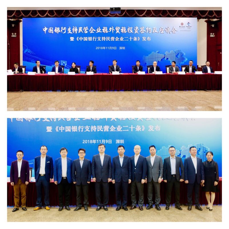 今年11月1日,習(xí)近平總書記召開民營企業(yè)座談會后,中國銀行將支持民營企業(yè)發(fā)展擺在了更加重要的位置。11月9日,“中國銀行支持民營企業(yè)穩(wěn)外貿(mào)穩(wěn)投資簽約及座談暨《中國銀行支持民營企業(yè)二十條》發(fā)布會”在中國銀行總行主會場及9個分會場同步舉行。中行深圳市分行按照總行統(tǒng)一部署,邀約邁瑞醫(yī)療、比亞迪、海普瑞、歐菲科技、欣旺達(dá)、信維通信、立訊精密、長園集團、華強集團、裕同科技等10家民營企業(yè)參會,并簽署戰(zhàn)略合作協(xié)議。11月15日,中行深圳市分行召開黨委(擴大)會議,研究進一步全面加強黨的建設(shè),集中學(xué)習(xí)了習(xí)近平總書記視察廣東和在民營企業(yè)座談會上的重要講話精神,提高對支持民營企業(yè)發(fā)展的思想認(rèn)識水平,將支持民營企業(yè)發(fā)展作為貫徹落實黨的十九大精神和總行發(fā)展戰(zhàn)略的具體行動。11月23日,中行深圳市分行召開《中國銀行支持民營企業(yè)二十條措施》政策解讀及宣導(dǎo)工作會議,提出落實總行“支持民營企業(yè)二十條”的十項重點工作。