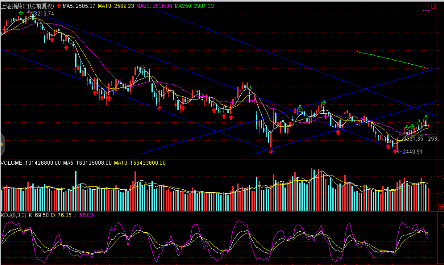 技術(shù)面:縮量整固,10日均線構(gòu)筑短期多空平衡,成交量進一步萎縮至2000億元左右形成窒息量結(jié)構(gòu)則可視為調(diào)整結(jié)束跡象;滬指2500--2600點運行,今日支撐2574點、壓力2591點。