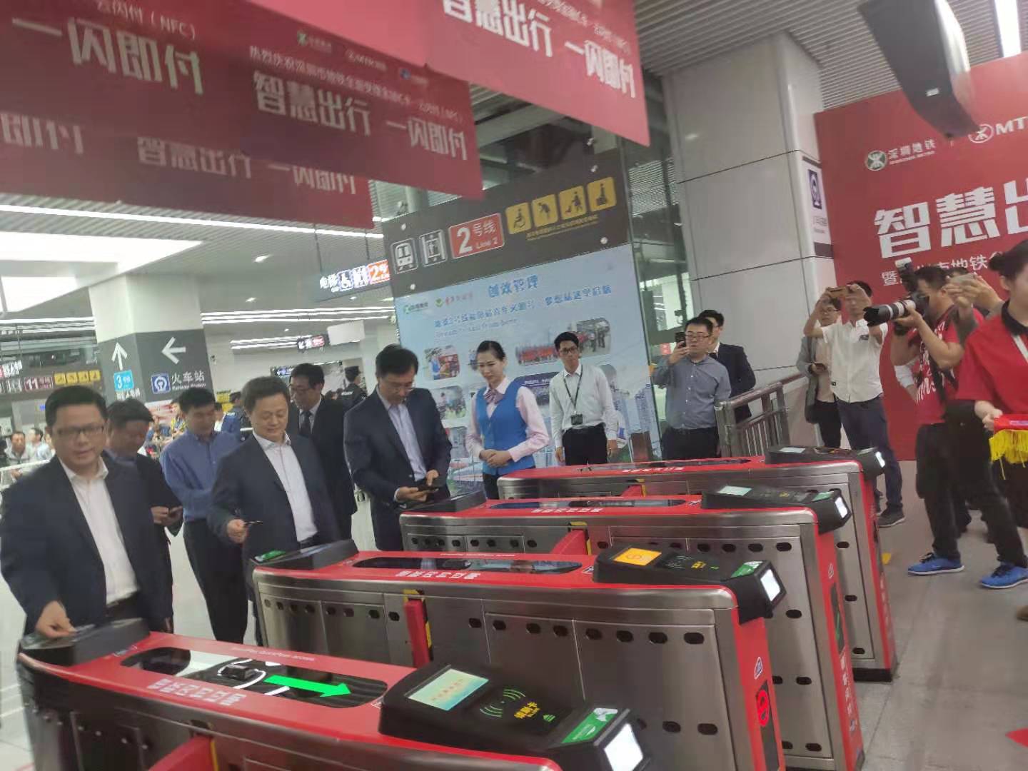3月1日上午,五洲賓館內舉行了“深圳市地鐵金融IC卡過閘服務”的啟動儀式。相關領導出席啟動儀式,并共同點亮LED燈幕,宣告深圳市地鐵8條線路的所有車站正式啟用過閘功能?! ?/h2>