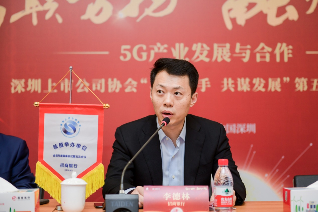 7月11日下午,由深圳上市公司協(xié)會(huì)牽頭、招商銀行股份有限公司主辦的“智聯(lián)萬(wàn)物,融智有招——5G產(chǎn)業(yè)發(fā)展與合作”會(huì)員月度圓桌會(huì)議第五次會(huì)議在招商銀行深圳分行大廈3樓多功能廳成功舉行。深圳市證監(jiān)局處長(zhǎng)梁文利、協(xié)會(huì)會(huì)長(zhǎng)麥伯良、協(xié)會(huì)執(zhí)行副會(huì)長(zhǎng)兼秘書(shū)長(zhǎng)黃鐵軍、招商銀行總行行長(zhǎng)助理李德林、總行董事會(huì)辦公室主任霍建軍等領(lǐng)導(dǎo)出席了本次活動(dòng),本次活動(dòng)邀請(qǐng)了來(lái)自信息技術(shù)、制造、金融、地產(chǎn)等5 G行業(yè)的40家上市公司董事長(zhǎng)、總經(jīng)理等60余人參加活動(dòng),行業(yè)專(zhuān)家齊聚一堂,共話(huà)5G發(fā)展浪潮中的機(jī)遇與挑戰(zhàn)。