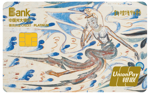 光大敦煌聯(lián)名信用卡卡面設(shè)計取材于敦煌壁畫,有敦煌大智文殊白金卡、敦煌天宮伎樂白金卡以及敦煌五百強盜成佛菁英白金卡三種信用卡。光大敦煌聯(lián)名信用卡的卡面設(shè)計靈感均來源于敦煌壁畫,大智文殊白金卡畫面為文殊菩薩結(jié)跏坐于青面獅虬首仙獅背上。文殊菩薩是專司智德、辯才第一的大菩薩,尊號“大智文殊”。天宮伎樂白金卡主體畫面為伎樂天,取材于莫高窟288窟,營造了佛陀講經(jīng)說法時佛國世界歡樂祥和的氛圍。五百強盜成佛菁英白金卡卡面設(shè)計取自“五百強盜成佛”的壁畫故事,佛用神通使被剜去雙眼的強盜重見光明,并對他們進行點化,五百強盜潛心苦修終成五百羅漢。光大敦煌聯(lián)名信用卡的卡面設(shè)計將傳統(tǒng)文化融入現(xiàn)代金融產(chǎn)品,極具敦煌文化的風(fēng)格。