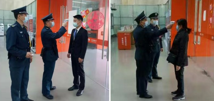 網(wǎng)點(diǎn)服務(wù)人員對(duì)進(jìn)入營(yíng)業(yè)網(wǎng)點(diǎn)的人員做好體溫測(cè)量,對(duì)于上門(mén)辦理業(yè)務(wù)的客戶,引導(dǎo)客戶佩戴口罩,鼓勵(lì)客戶使用自助機(jī)具或線上金融服務(wù),每日定時(shí)對(duì)填單臺(tái)、簽字筆等客戶頻繁接觸部位進(jìn)行消毒,保障客戶身體健康。