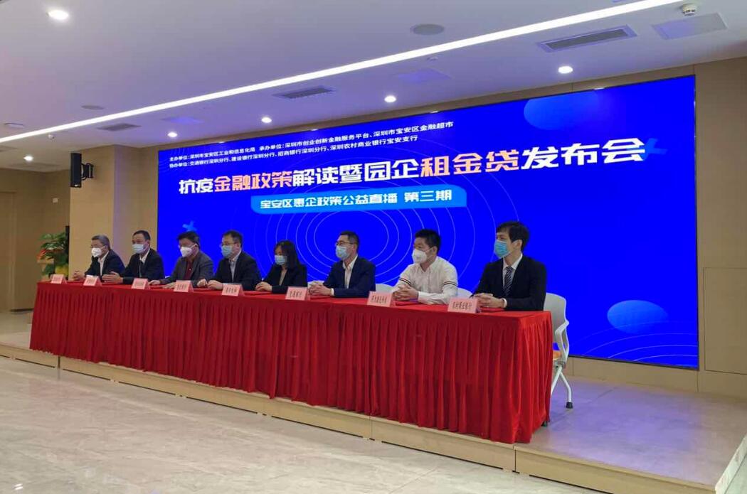 2020年3月11日,由寶安區(qū)金融超市組織的《抗疫金融政策解讀暨園企租金貸發(fā)布會(huì)》進(jìn)行在線直播,區(qū)工信局特別邀請(qǐng)深圳農(nóng)商行寶安支行作為發(fā)布會(huì)的四家協(xié)辦銀行之一,為企業(yè)講解“抗疫周轉(zhuǎn)貸”專項(xiàng)產(chǎn)品。發(fā)布當(dāng)天,深圳農(nóng)商行寶安支行與首筆租金貸客戶深圳市同為激光科技有限公司進(jìn)行了現(xiàn)場(chǎng)簽約。深圳農(nóng)商行寶安支行全力配合寶安區(qū)政府相關(guān)部門的金融抗疫工作,進(jìn)一步加大疫情期間對(duì)中小微企業(yè)復(fù)工復(fù)產(chǎn)的支持力度,為疫情防控持續(xù)貢獻(xiàn)金融力量。本次發(fā)布會(huì)共有1500余人在線觀看。