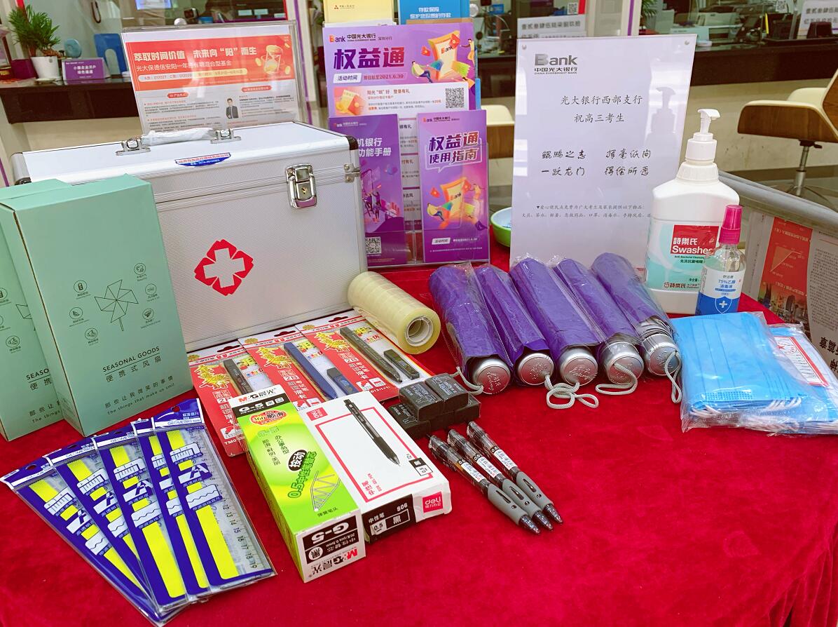 6月7日-8日期間,光大銀行深圳分行的一些支行網(wǎng)點,出現(xiàn)了暖心的一幕——高考便民服務驛站免費為附近考點的廣大考生與家長提供部分文具、口罩、解暑藥品、茶水、便攜風扇、遮陽傘等便民物品。不少送考家長等候期間在便民驛站停留并感受到細心的服務,連連稱贊銀行的服務人性化、貼心。