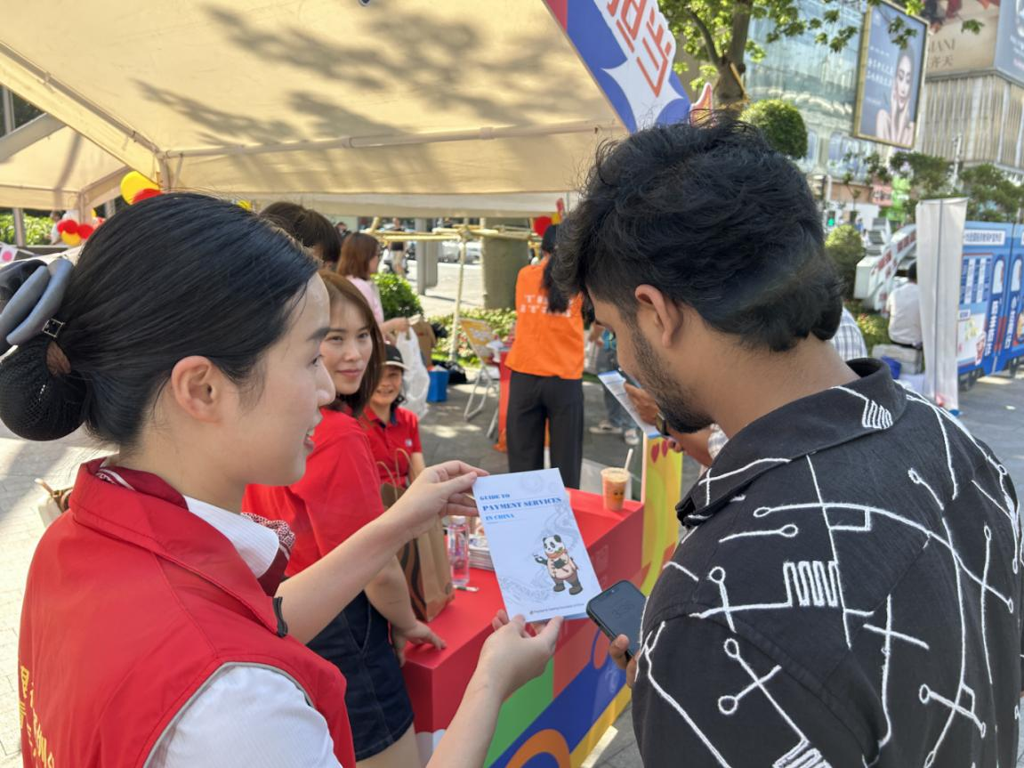 廣發(fā)銀行深圳分行員工為到場的外國友人送上英文版《外籍來華人員支付指南》