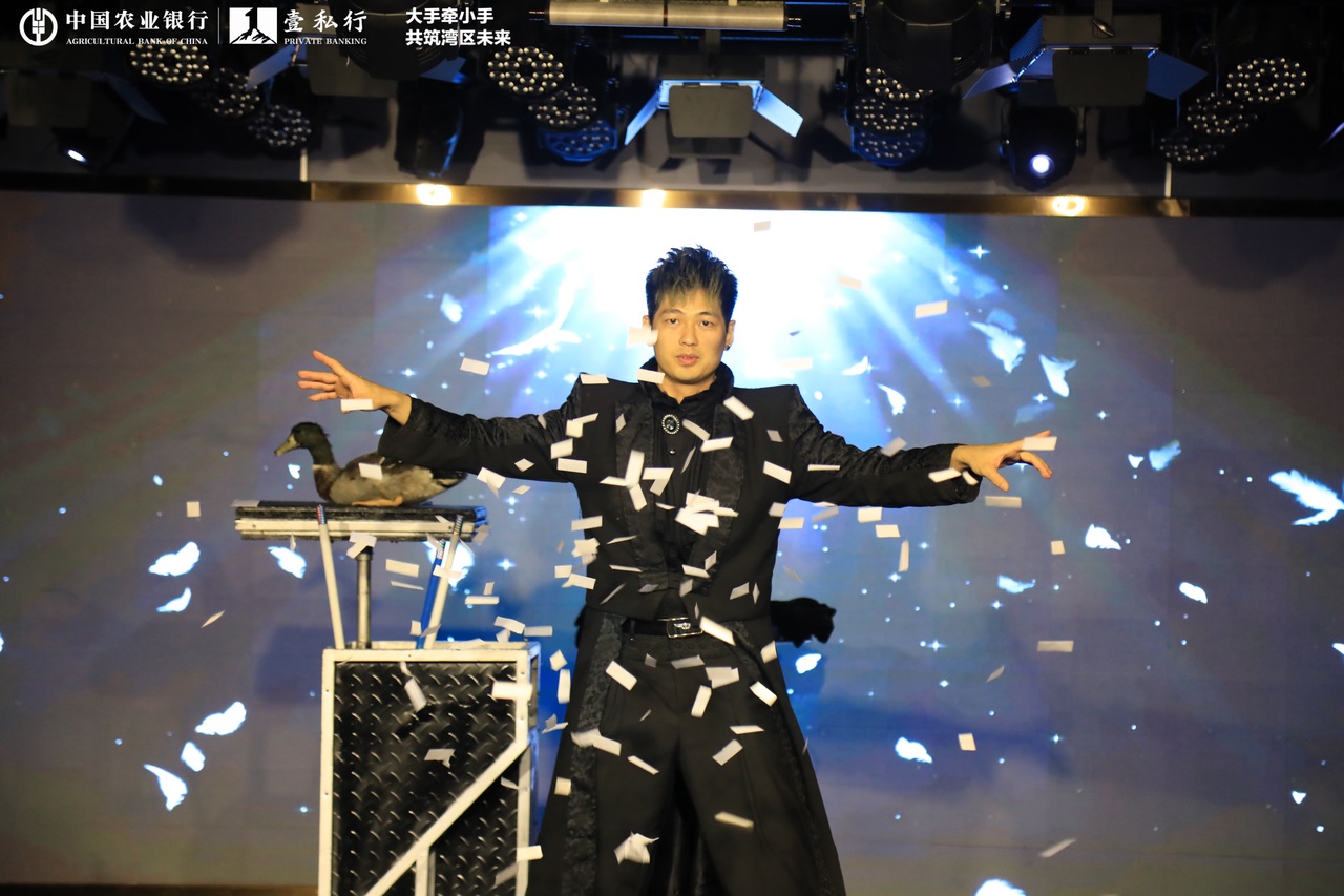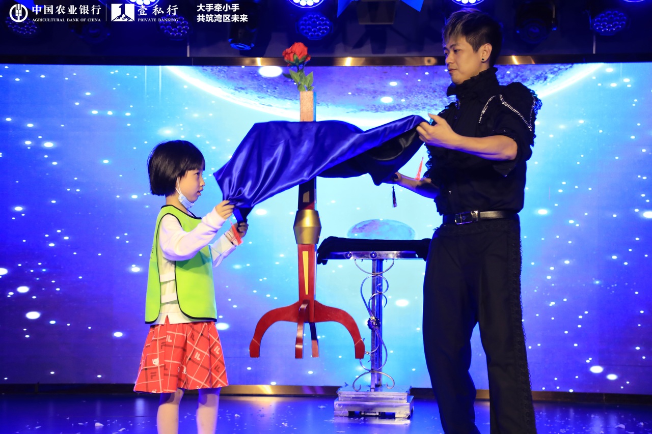 在騎鯨劇場(chǎng)里,奇幻魔術(shù)秀環(huán)節(jié),來(lái)自農(nóng)業(yè)銀行的小朋友被抽中上臺(tái),與魔術(shù)師共同感受魔術(shù)的魅力。