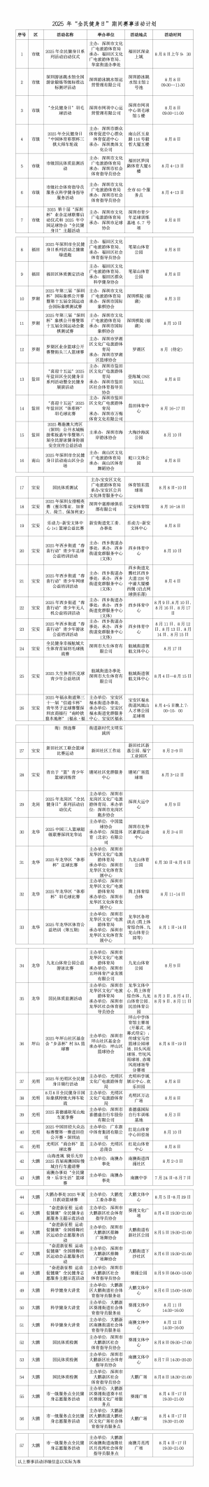 2025年8月8日是我國(guó)第17個(gè)“全民健身日”。今年,深圳迎來了第十五屆全國(guó)運(yùn)動(dòng)會(huì)和殘?zhí)貖W會(huì),為積極響應(yīng)“全民全運(yùn),全運(yùn)惠民”的理念,深圳在“全民健身日”期間精心組織了57項(xiàng)群眾喜聞樂見的賽事活動(dòng),涵蓋球類、徒步、騎行、水上等多個(gè)項(xiàng)目,139家體育場(chǎng)館面向市民免費(fèi)或優(yōu)惠開放,降低運(yùn)動(dòng)門檻,惠及更多市民。