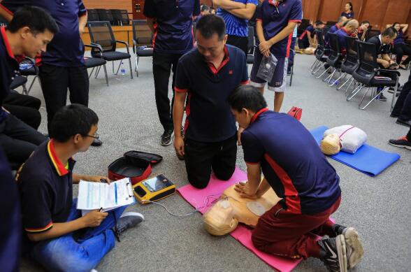 據(jù)施救的市體育中心網(wǎng)羽中心工作人員表示:“入職期間公司有系統(tǒng)的組織我們參加初級救護(hù)員培訓(xùn),自己也掌握了一些急救措施,包括心肺復(fù)蘇按壓,AED的使用及傷口處理等,但實(shí)際遇到這種情況還是第一次,當(dāng)時救人的時候還是很緊張的,最終挽回了一個生命,急救知識、技能的普及顯得尤為重要的。”