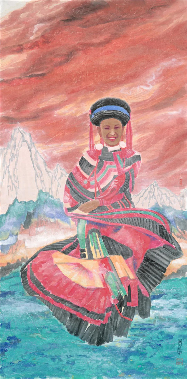 高山上的舞蹈 彩墨 136X68cm 2020年