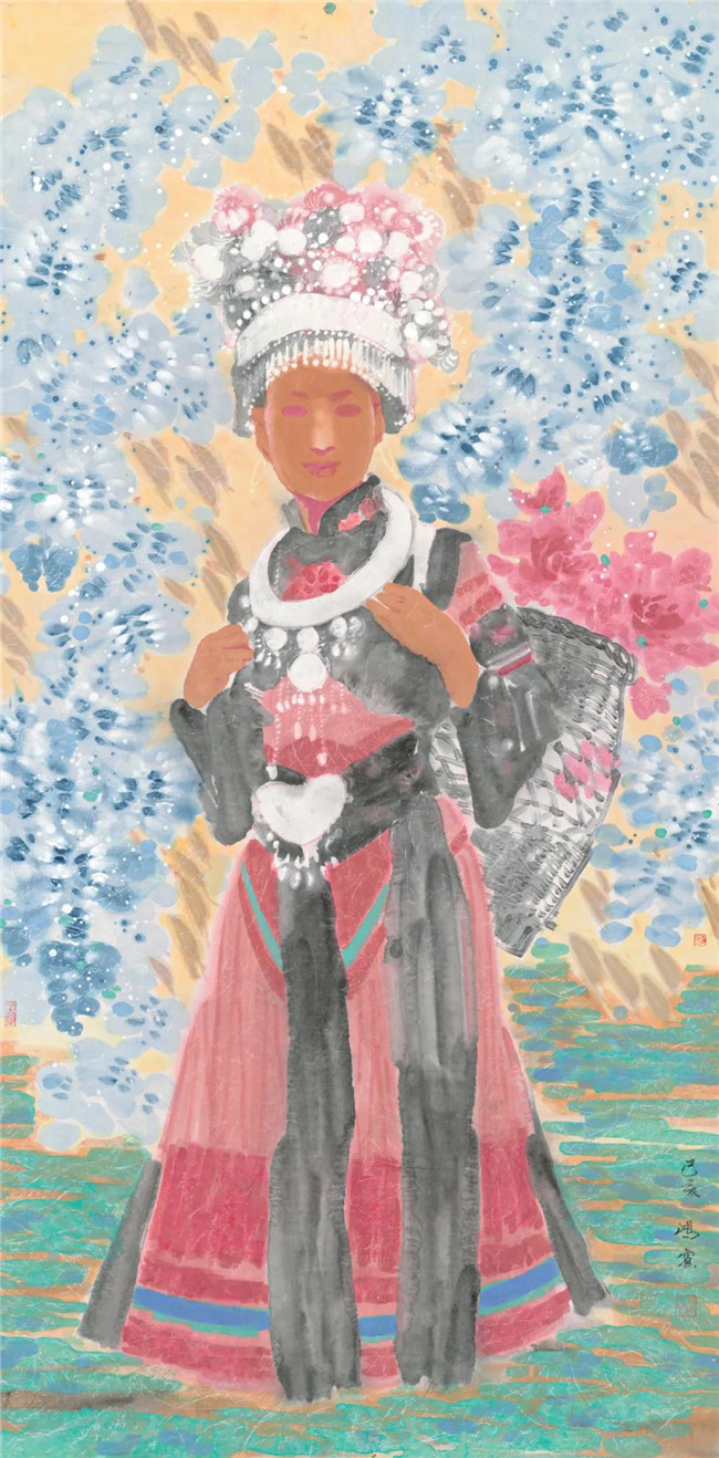 傈僳少女 彩墨 136X68cm 2019年