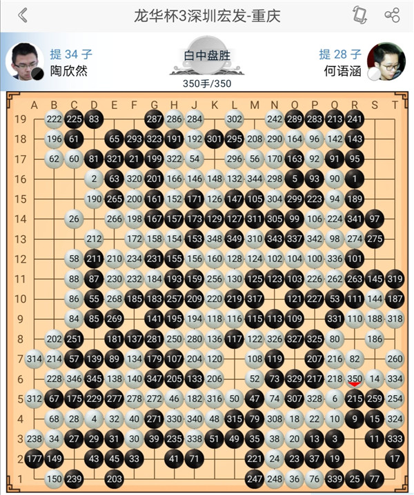 三臺陶欣然執(zhí)黑對陣小將何語涵,局面一直糾結(jié),官子階段有所失誤,最終白棋獲勝。四臺小將石豫來執(zhí)白對陣小將李翔宇,白棋進入小官子時候局勢領(lǐng)先,可惜下出了一個小勺子,被黑抓住機會形成小轉(zhuǎn)換便宜了幾目棋。最終白棋以3/4子差距落敗。