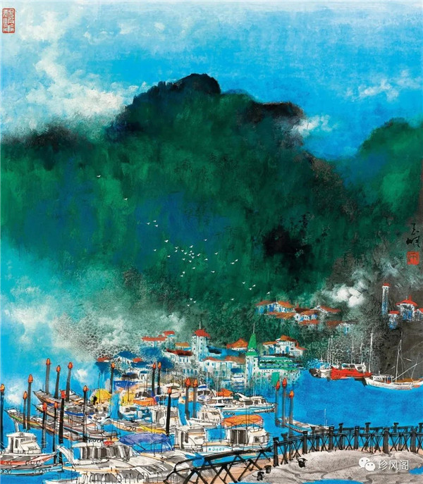 來(lái)自南京而定居于深圳的宋玉明,試圖將新金陵畫派表現(xiàn)現(xiàn)實(shí)的變革精神用于現(xiàn)代城市山水畫的探索上。作為新金陵畫派的第二代畫家,宋玉明直接承傳了宋文治表現(xiàn)現(xiàn)代太湖人居環(huán)境秀潤(rùn)而精巧的家法,并將此種大山景加小民居的畫法轉(zhuǎn)用到深圳城市形態(tài)的表現(xiàn)上。這里,我們一方面可以看到深圳作為一個(gè)新興的現(xiàn)代城市借山而筑、注重自然環(huán)境在城市生態(tài)建設(shè)上的積極作用;另一方面,深圳這種與自然相統(tǒng)一的現(xiàn)代化城市建設(shè)理念,也為宋玉明進(jìn)行城市山水畫創(chuàng)作提供了完美的表現(xiàn)對(duì)象。在《深圳文錦渡》等作品里,我們看到了畫家巧妙地將城市現(xiàn)代建筑與自然山水融為一體的表現(xiàn)。這些畫作,大多以勾線渲染的方法表現(xiàn)遠(yuǎn)景中的商用或市政建筑設(shè)施,也因這些建筑被設(shè)置在中遠(yuǎn)景,不僅減少了建筑塑造的困窘,而且突出了這些人居建筑與自然相得益彰的和諧關(guān)系。這些畫作,從嚴(yán)格的意義上說(shuō),仍然是山水畫,而宋式小散鋒皴以及云煙雨霧的渲染,也為畫面增添了幽深、恬靜、高雅、平和的意趣與境界。這些畫作,讓我們所熟悉的城市從一個(gè)相對(duì)遙遠(yuǎn)的視角來(lái)觀看,既因距離產(chǎn)生了一種從未體驗(yàn)過(guò)的美感,也較好地體現(xiàn)了現(xiàn)代城市與自然占位的協(xié)調(diào)統(tǒng)一、舒適宜居的比例關(guān)系。
