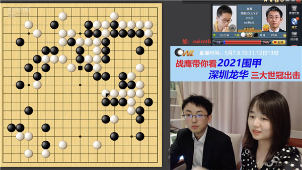 今日虎牙直播,職業(yè)女棋手戰(zhàn)鷹繼續(xù)現(xiàn)場(chǎng)講解點(diǎn)評(píng)深圳龍華隊(duì)對(duì)局情況,觀看人數(shù)又創(chuàng)新高,直沖30萬(wàn)大關(guān)。賽后,“龍哥”時(shí)越來(lái)到直播室,與迷們一起分享了對(duì)局過(guò)程中的心路歷程。戰(zhàn)鷹作為圍棋知名主播,是深圳龍華隊(duì)網(wǎng)上直播合作人,為龍華隊(duì)帶來(lái)了一波接一波的人氣,直播室十分熱鬧!喜歡的朋友接著看吧!不過(guò),大家要記得:明天圍甲休息一天,接著三天會(huì)連播。