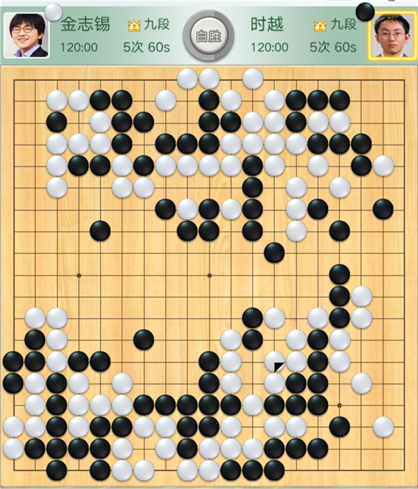 緊接著,時(shí)越執(zhí)黑對(duì)陣金志錫一局傳來告負(fù)的消息??v觀全局,開局時(shí)黑稍好,但中盤攻擊上邊白棋時(shí)候方向錯(cuò)誤,被白棋聯(lián)絡(luò)后自身還留下了白棋開劫的隱患。之后黑棋在劫爭中放棄上方黑子在下邊圍出大模樣爭勝。白棋在黑勢中施展手段時(shí)黑棋必需尋求凈殺白子。無奈周邊不夠厚實(shí)殺不掉,遂于174手時(shí)認(rèn)負(fù)。
