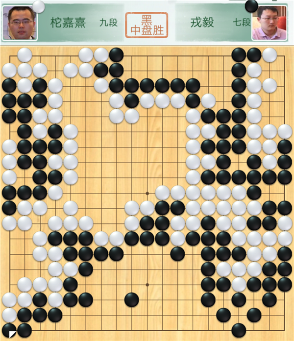 不過,接下來喜訊再次傳來:戎毅快棋執(zhí)黑贏了世界冠軍柁嘉熹。深圳龍華隊(duì)至此奠定勝局,至少是2:2主將勝,拿兩分。這一局,中盤時(shí)白棋在中央尋求作戰(zhàn),黑棋正面應(yīng)對(duì)則局面有利。實(shí)戰(zhàn)黑棋避戰(zhàn)搶占右邊,中央白棋先動(dòng)手后白棋領(lǐng)先。但在之后官子爭奪戰(zhàn)中,白棋失誤頻頻,黑棋遂幸運(yùn)小勝。