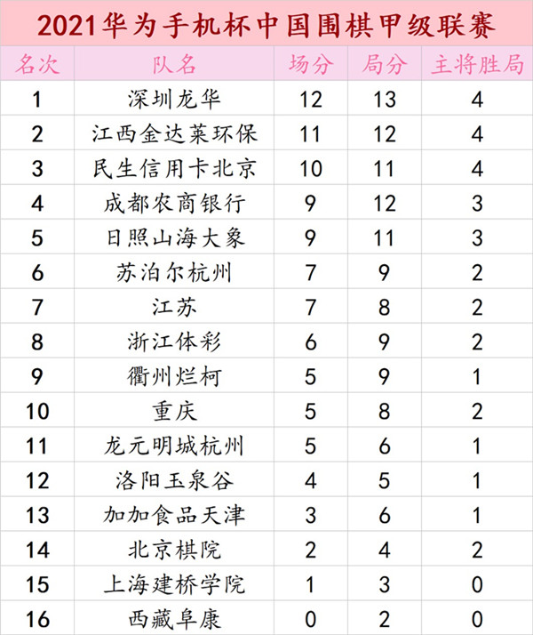 2021華為手機(jī)杯中國圍棋甲級(jí)聯(lián)賽第四輪深圳龍華3:1勝衢州爛柯