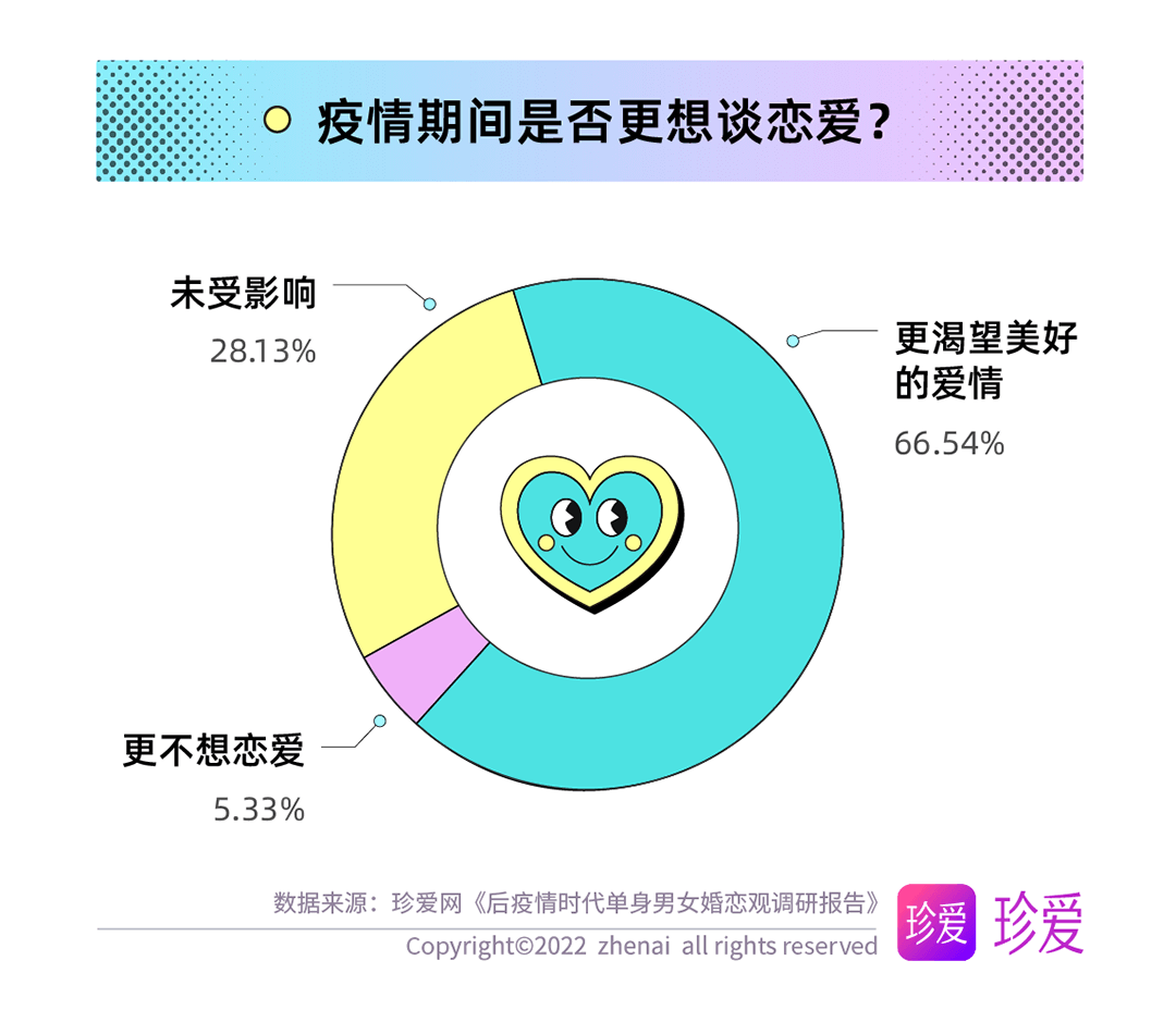 讀特客戶端·深圳新聞網(wǎng)2022年6月14日訊(記者 葉梅)疫情讓人們的生活狀態(tài)、工作方式和個(gè)人習(xí)慣都發(fā)生了顯著變化,而對(duì)單身人群而言,疫情三年他們對(duì)感情的態(tài)度又有哪些改變?現(xiàn)在的他們?nèi)绾慰创H密關(guān)系?珍愛(ài)網(wǎng)聚焦后疫情時(shí)代單身人群的婚戀觀發(fā)起調(diào)研,探究疫情期間單身人群在戀愛(ài)期待、擇偶標(biāo)準(zhǔn)、脫單難度等方面的變化。本次調(diào)研共回收問(wèn)卷9862份。