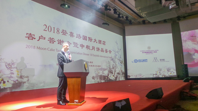活動開始,登喜路國際大酒店總經理譚志堅先生為晚會致辭。譚先生希望借此次品鑒會,讓來賓對登喜路月餅有全新的認識,更衷心的希望,在這次晚宴上彼此能夠進行深入溝通,增進互信,加強合作,共敘友誼,共謀發(fā)展!