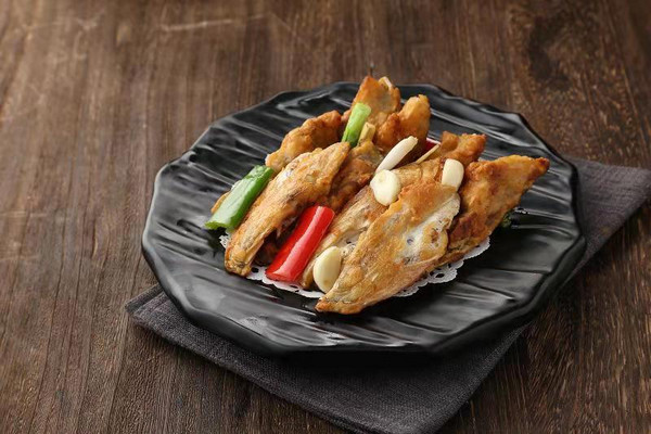 順德勒流名菜之一,明代李時珍認為:“鳙之美在于頭”。取鳙魚,即大頭魚的魚頭精華部位——魚嘴入饌,用順德人擅長的煎焗技法使魚頭色澤金黃、鮮香嫩滑。