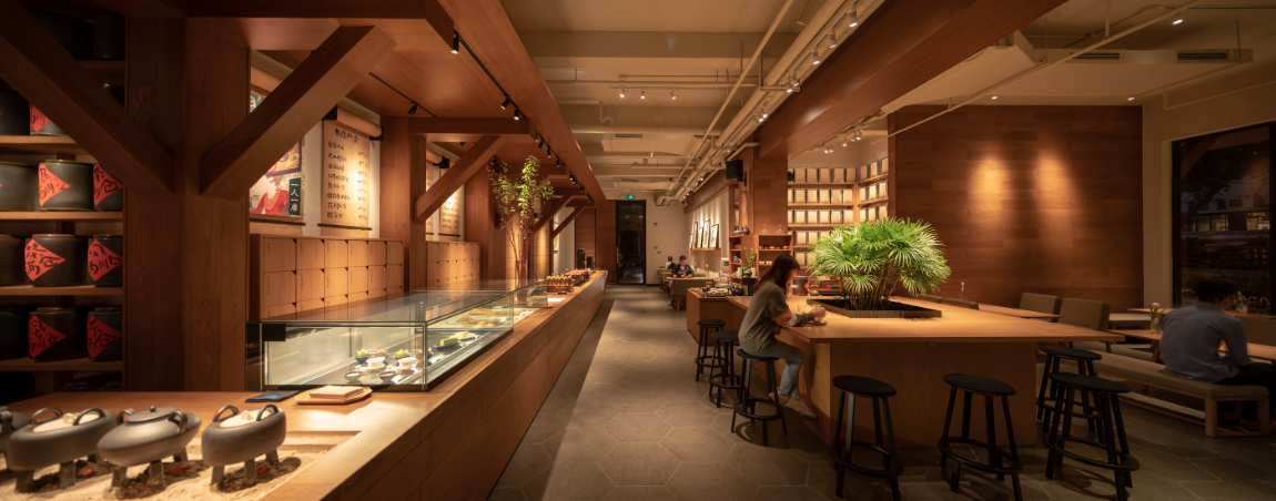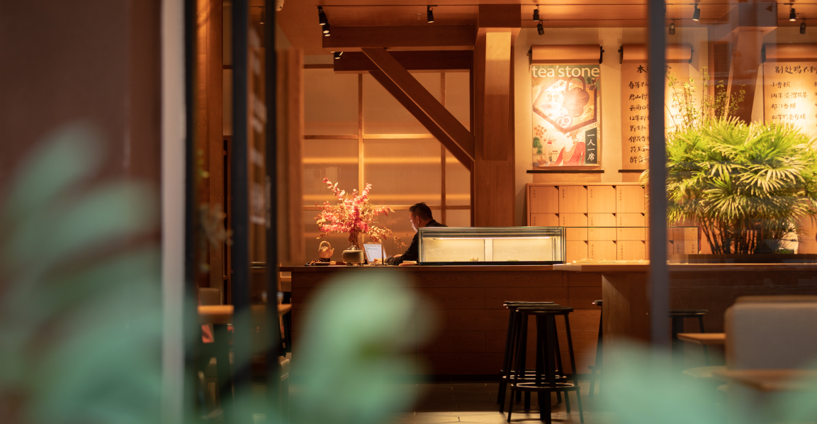 “一個溫暖的會客廳”是tea’stone對所構(gòu)建的茶空間的定義,也是他們對其所提倡的茶美學(xué)生活的表達(dá)之一。tea’stone團(tuán)隊有著深厚的空間美學(xué)造詣,在傳統(tǒng)的基礎(chǔ)上做減法,沉浸式的開放空間,選取東方美學(xué)的核心因素,以傳統(tǒng)梁柱,斗拱和椽檁,勾勒出當(dāng)代簡約的茶空間,呈現(xiàn)出精制溫暖的格調(diào),家私、櫥窗、花藝凡見種種,皆散發(fā)著和諧雅致的美感。簡潔,現(xiàn)代,精致,溫暖,再結(jié)合“一人一席”的飲茶方式,讓喝茶這件事完整靈動,并且稱得上具有美感的生活方式。難怪能看到越來越多的人們抱著筆記本坐在tea’stone里面獨處、辦公、會友?,F(xiàn)代中國人的“第三空間”從此又有了新的選擇。