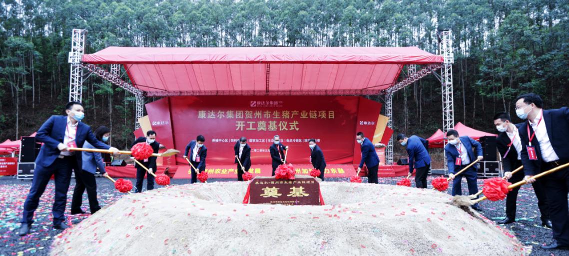 2020年3月18日上午,作為賀州市2020年第一季度重大項目——康達(dá)爾集團(tuán)賀州市兩百萬頭生豬產(chǎn)業(yè)鏈項目在廣西賀州市八步區(qū)舉行開工奠基儀式。