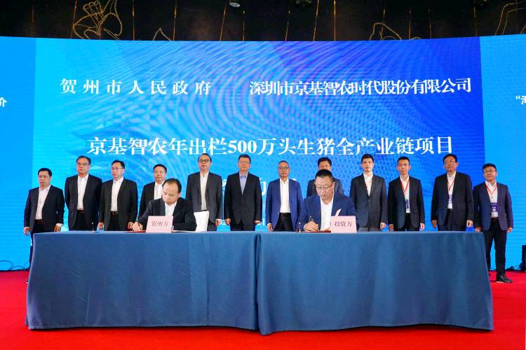 見圳客戶端·深圳新聞網2020年5月25日訊 2020年5月22日,廣西東融先行示范區(qū)(賀州)建設發(fā)展若干政策新聞發(fā)布會暨“灣企入桂”賀州項目推介會在深圳舉行。推介會上,深圳市京基智農時代股份有限公司 (以下簡稱“京基智農”)與廣西賀州市人民政府簽署《京基智農賀州市年出欄500萬頭生豬全產業(yè)鏈項目合作框架協(xié)議》,這意味著京基智農生豬產業(yè)布局劍指千萬頭規(guī)模,現(xiàn)代農業(yè)板塊駛入發(fā)展的快車道。