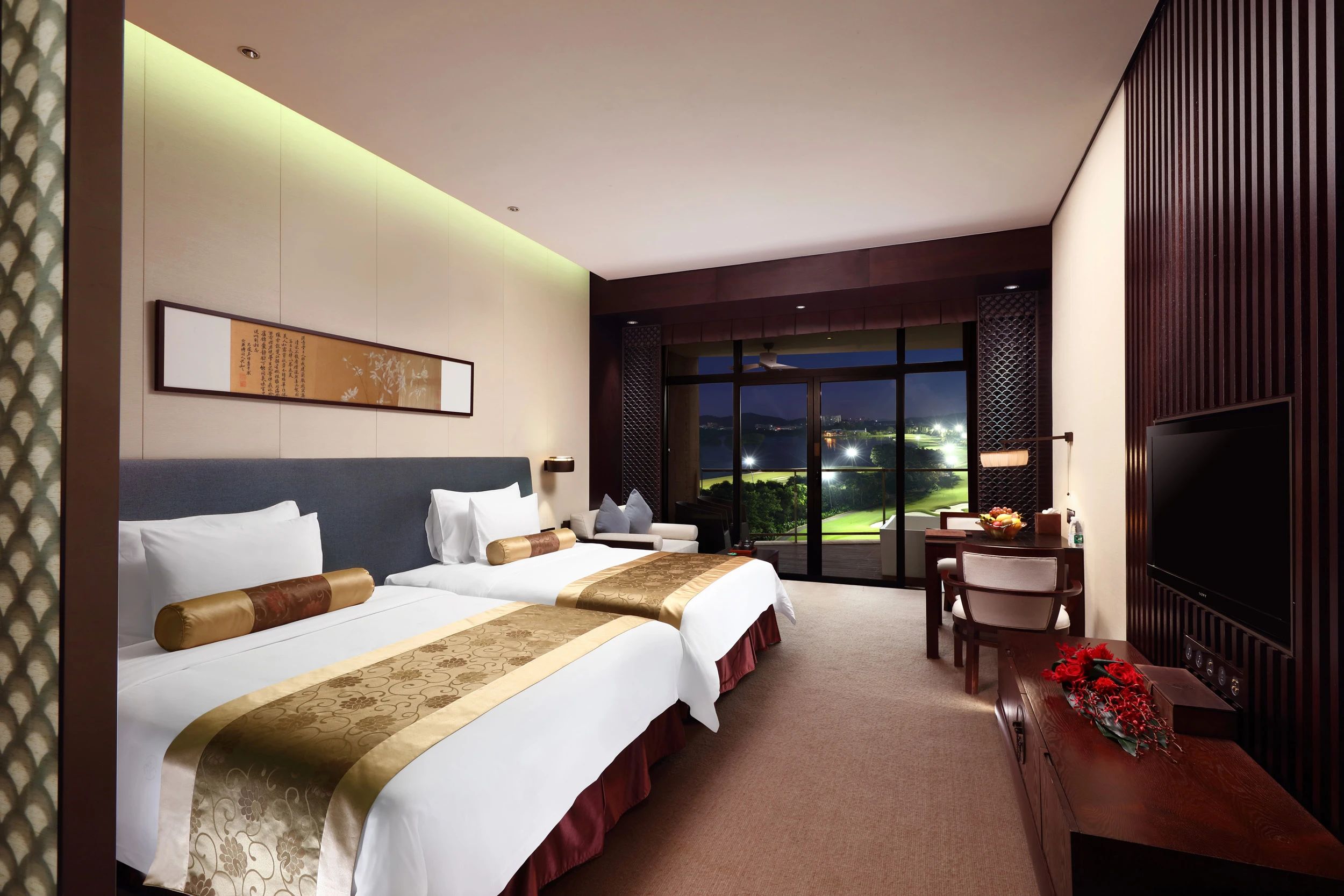 酒店掩映于一片蒼綠之中,從入口嶺南系建筑到大堂1:1還原1978年曾候乙編鐘,處處彰顯著酒店的設(shè)計巧思。