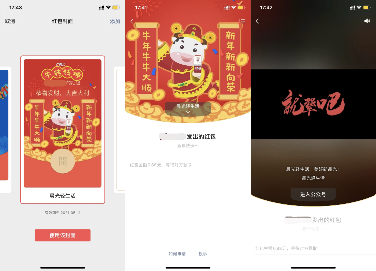 2021年的春節(jié)線上定制紅包封面成為網(wǎng)民熱議的話題,相較于往年的春節(jié)紅包,各具特色、風(fēng)格不一的紅包封面無(wú)疑是今年最明顯的特色了。晨光乳業(yè)也為此做出了嘗試,針對(duì)晨光牛奶用戶和粉絲大膽設(shè)計(jì),將憨態(tài)可掬的品牌IP放置在封面C位。無(wú)疑,這波寵粉操作有助晨光牛奶獲得更多粉絲的點(diǎn)贊,增強(qiáng)用戶粘度。