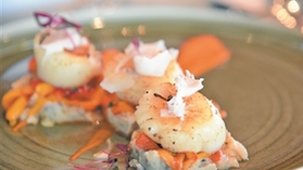 選材對海鮮的烹飪很重要。例如這款香煎帶子,酒店行政總廚Francesco建議選取加拿大新鮮帶子,個頭大,肉質鮮嫩多汁,口感更為Q彈。