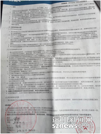 合同上標(biāo)明著“超過10天將不予辦理任何理由的退學(xué)申請”