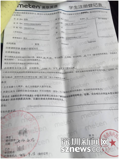 《課程注冊(cè)合同條款》中注明:學(xué)員在該條款中簽名即表明已經(jīng)完全了解美聯(lián)英語課程的特點(diǎn)、收費(fèi)