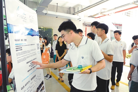 在廣州市機(jī)電技師學(xué)院招聘會(huì)現(xiàn)場,記者發(fā)現(xiàn),熱門企業(yè)攤位前早已大排長龍。