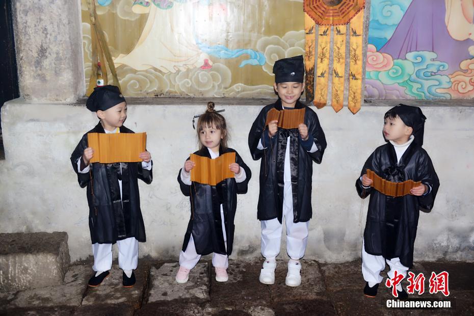 10月16日,在“道教名山”、世界自然遺產(chǎn)地江西上饒三清山,5名來(lái)自中外的萌娃身穿統(tǒng)一道服,手持竹簡(jiǎn),在三清宮跟著道教師傅朗讀《道德經(jīng)》、《弟子規(guī)》,學(xué)習(xí)太極拳、書法、古箏等中國(guó)傳統(tǒng)文化。這群萌娃中年齡最小的僅11個(gè)月,年齡最大也只有6歲。程希雪攝