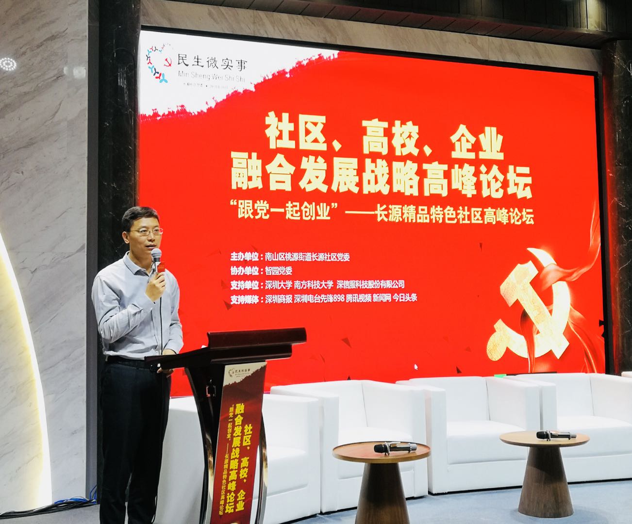 深圳新聞網(wǎng)訊10月30日,社區(qū)、高校、企業(yè)融合發(fā)展戰(zhàn)略高峰論壇在深圳市南山區(qū)智園 B1棟黨群服務(wù)中心大樓舉行,論壇由南山區(qū)桃源街道長源社區(qū)黨委主辦。本次論壇以“社區(qū)、高校、企業(yè)融合發(fā)展戰(zhàn)略”為主題,匯聚了來自社區(qū)、高校、企業(yè)的相關(guān)知名人士,共同探討融合發(fā)展策略,打造長源精品特色社區(qū)。桃源街道黨工委書記黃健,知名社會(huì)學(xué)家、深圳大學(xué)教授易松國,深信服科技股份有限公司黨委書記林彥,南方科技大學(xué)致誠書院副院長藍(lán)海等出席了論壇。