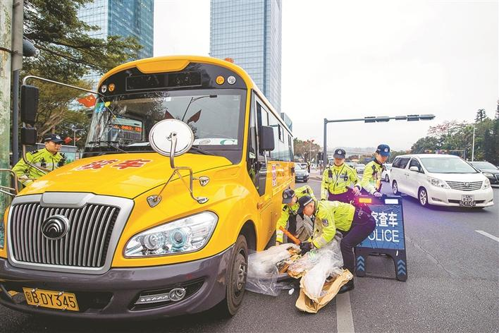 開學(xué)首日,深圳交警路上設(shè)卡檢查校車。
